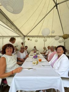 Und danach? Eine Party in Weiß! Wir versammelten uns in unseren weißen Outfits im Birdies -Zelt, welches liebevoll von Marita und Sabine geschmückt wurde. Die Dekoration wurde von unserem Pro Oliver gespendet. Es war ein perfekter Tag mit Golf, guten Freundinnen und jeder Menge Spaß und einem leckeren Essen zum Abschluss.
