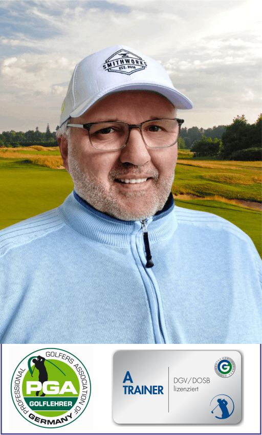 Zu meinem Hintergrund: Ich bin seit über 40 Jahren Mitglied der PGA of Germany und besitze die A-Trainer-Lizenz des DGV und DOSB. Dabei ist es mir wichtig, nicht stehenzubleiben: Durch regelmäßige Fortbildungen bei der PGA und dem DGV halte ich mein Wissen stets auf dem aktuellen Stand der Trainingslehre. Diese Kombination aus langjähriger Erfahrung und modernem Know-how möchte ich nutzen, um Sie in Ihrem Spiel weiterzubringen.